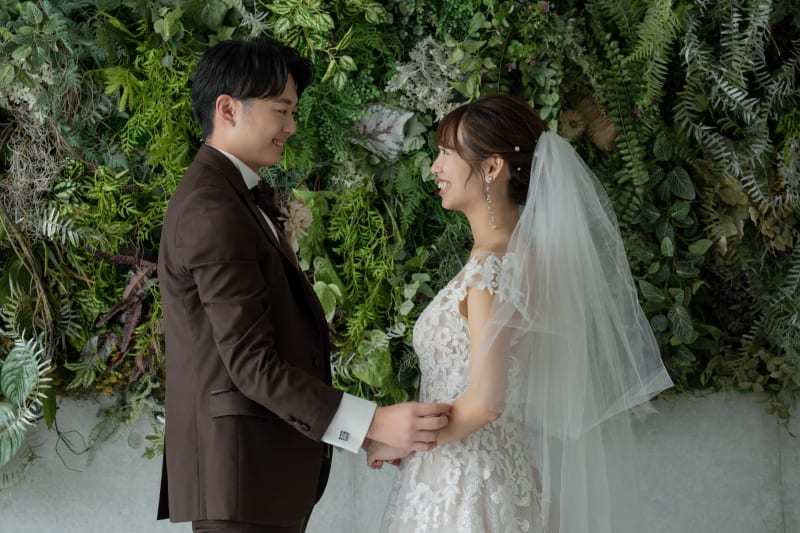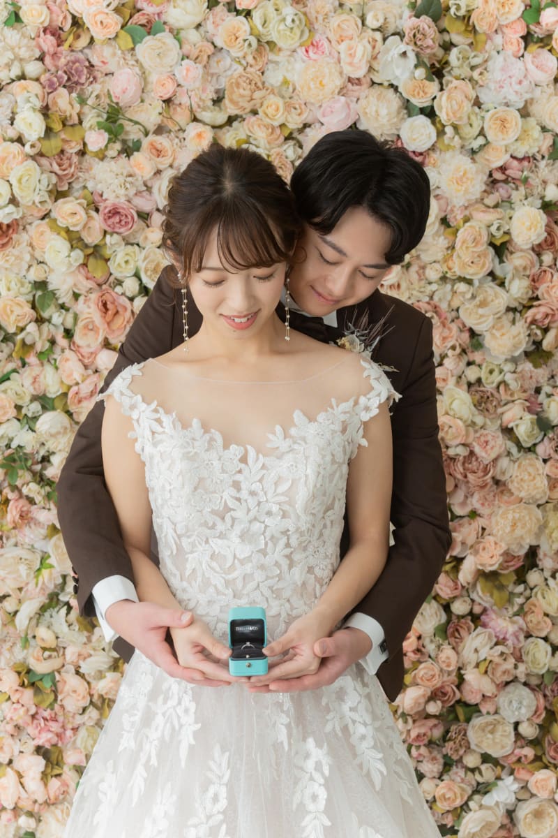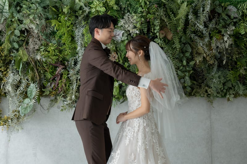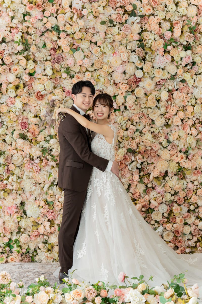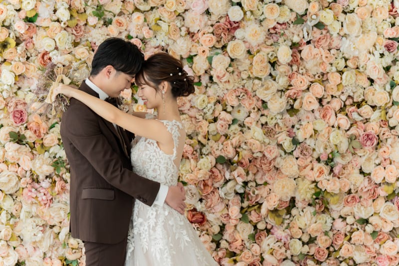フラワーウォールの背景では更にお二人が近づいたカットも♡