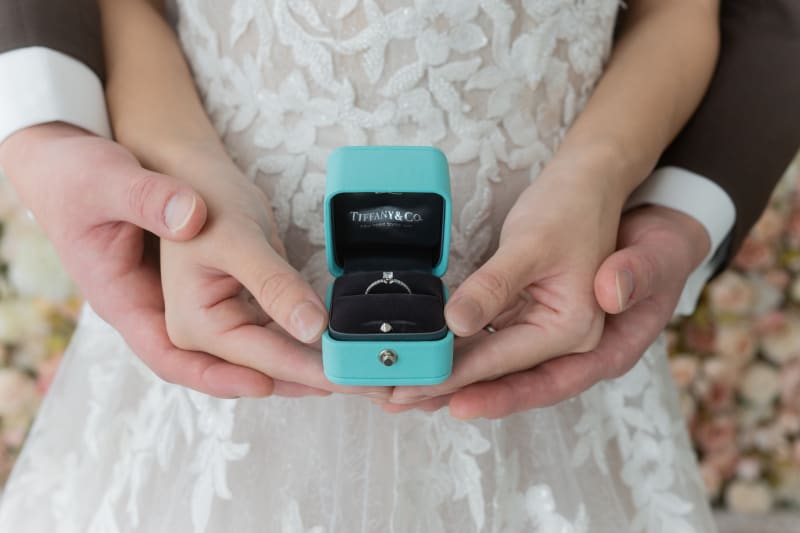 嬉しそうな表情で指輪を見つめるお二人。