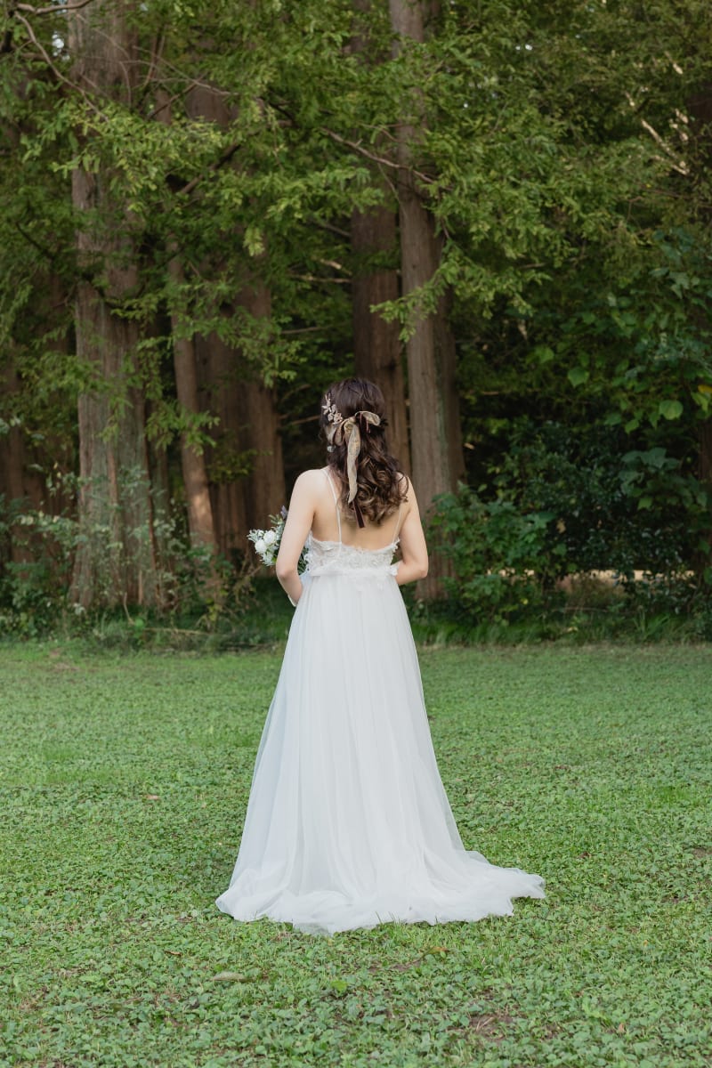 スパゲティストラップが華奢な雰囲気もプラスします。