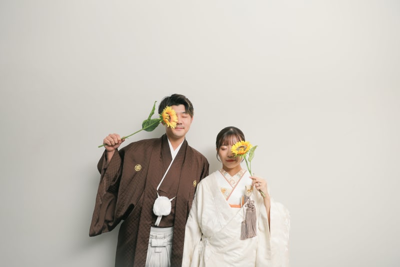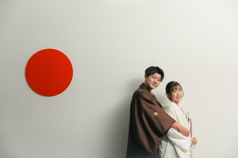 庭園のような背景以外にも、日本らしさをイメージした日の丸やのれんの背景のご用意もございます!