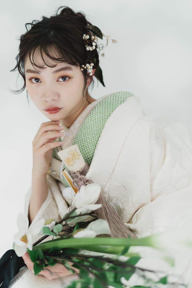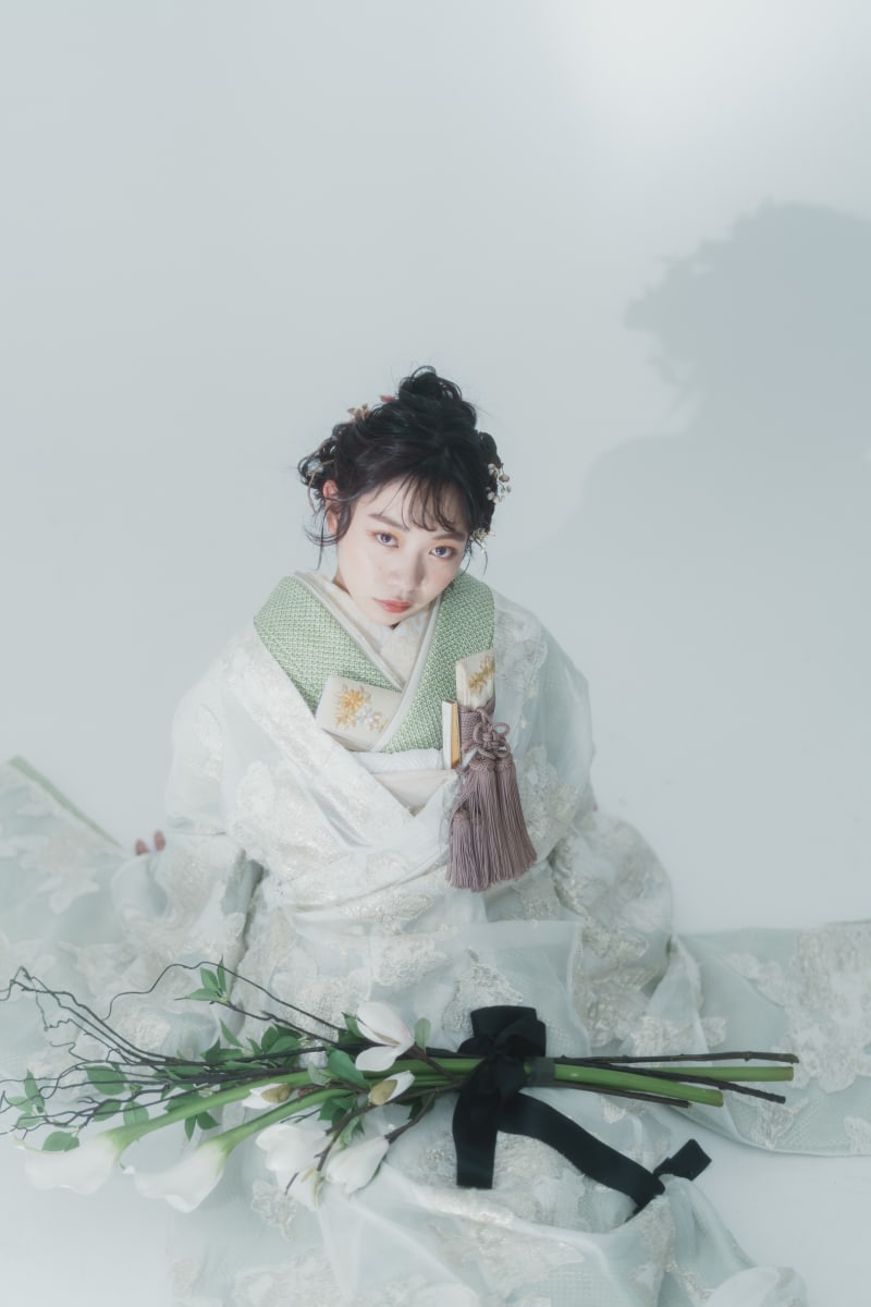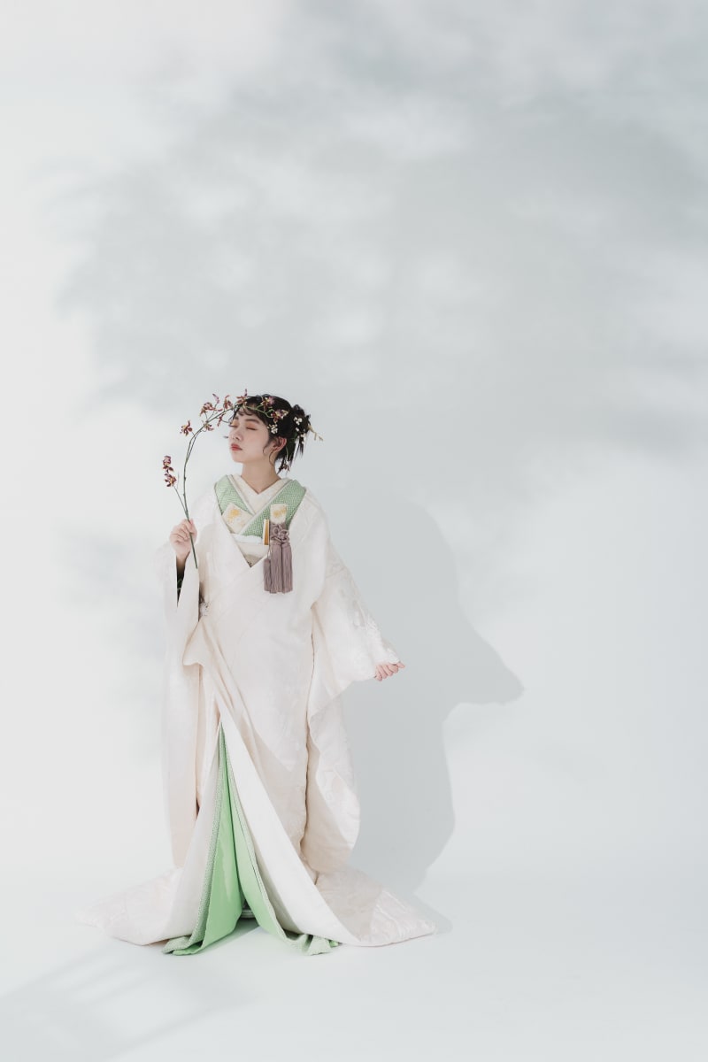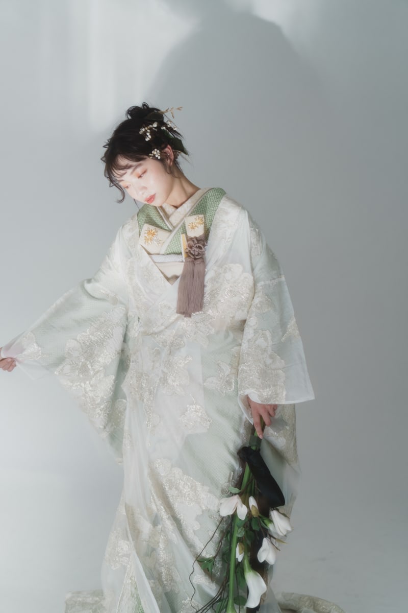 通常白いお着物がスタンダードですがこちらをお色や柄が入っているお着物にチェンジすることができるんです!!!