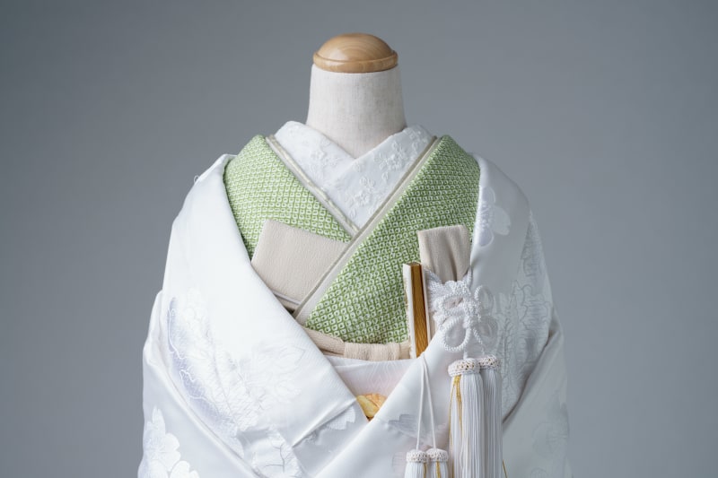 以前ブログでご紹介させていただいた新作のグリーンの絞り柄掛下コーディーネートです!