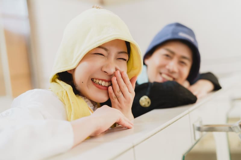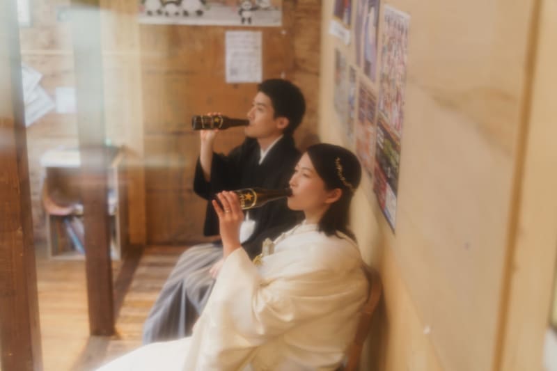 今回のお二人は、温泉にあるビールをご購入いただき飲んでいるところを撮影してみました⭐️