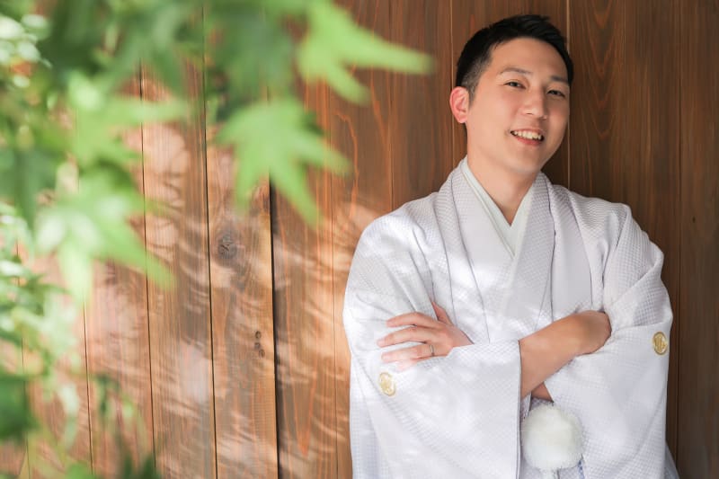 和装の伝統的な立ち姿です。 ここでは新婦様の着物を綺麗に整えてからお撮りしていきます。