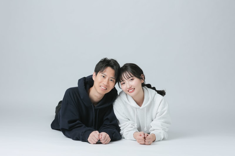私服フォトのためにお揃いのパーカーで揃えてきてくださったお二人でした!
