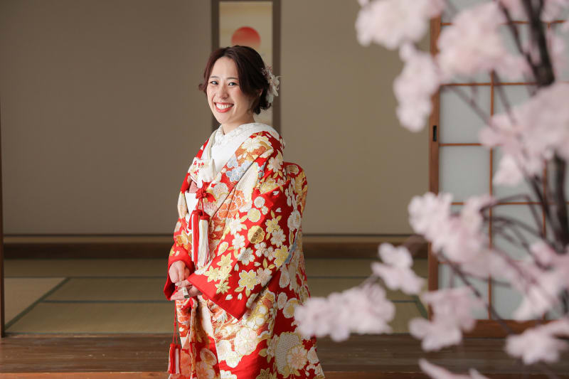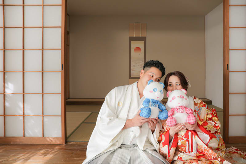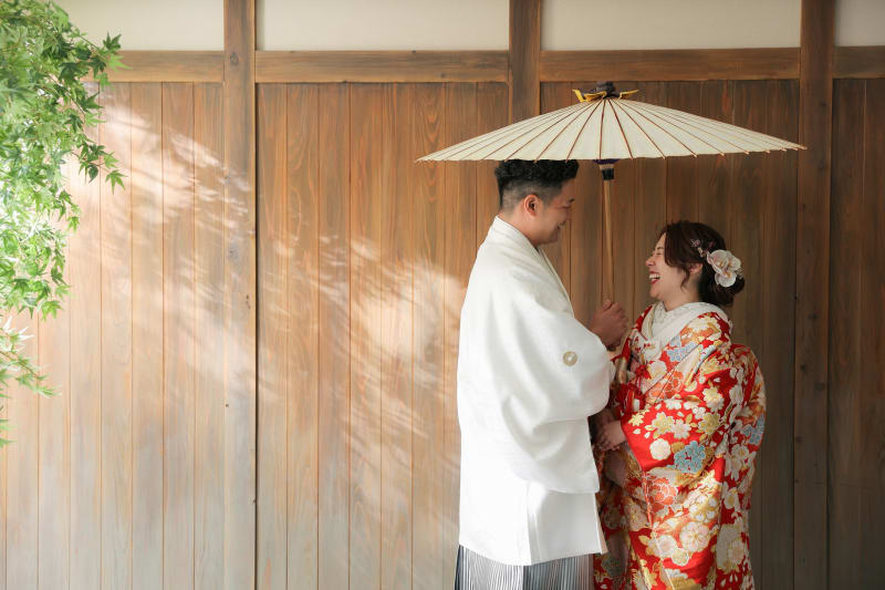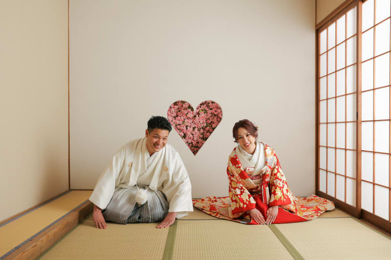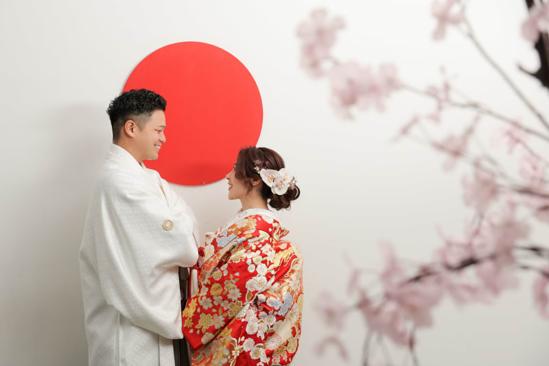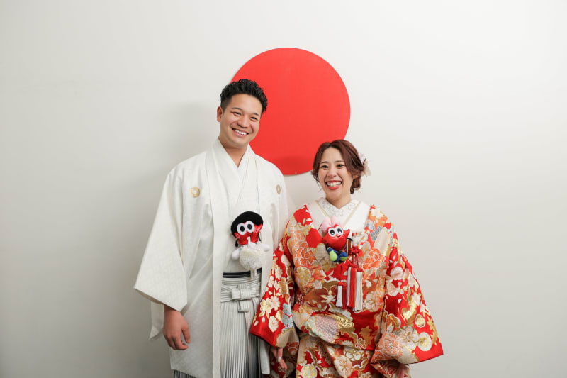 お二人の紅白カラーの着物と相性ばっちりです◎
