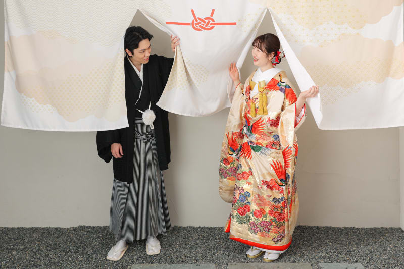 のれんのはひょっこりお二人で顔を出したり、可愛らしい背景として様々なポージングに利用することができます。