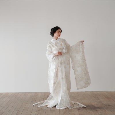 透け感のあるレース素材に繊細な刺繍が施されているふわふわキラキラの打掛…!