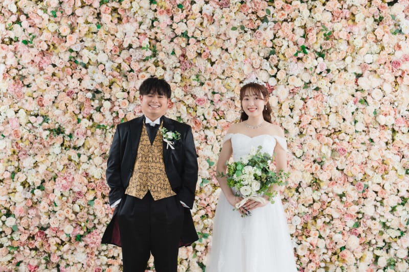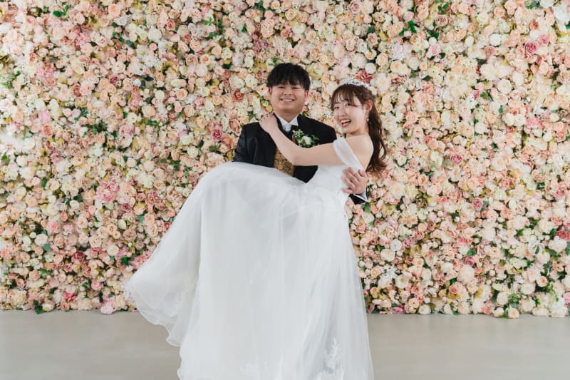 お花が敷き詰められた壁では、たくさんのお花に囲まれたようなロマンチックなお写真が撮れちゃいます♡