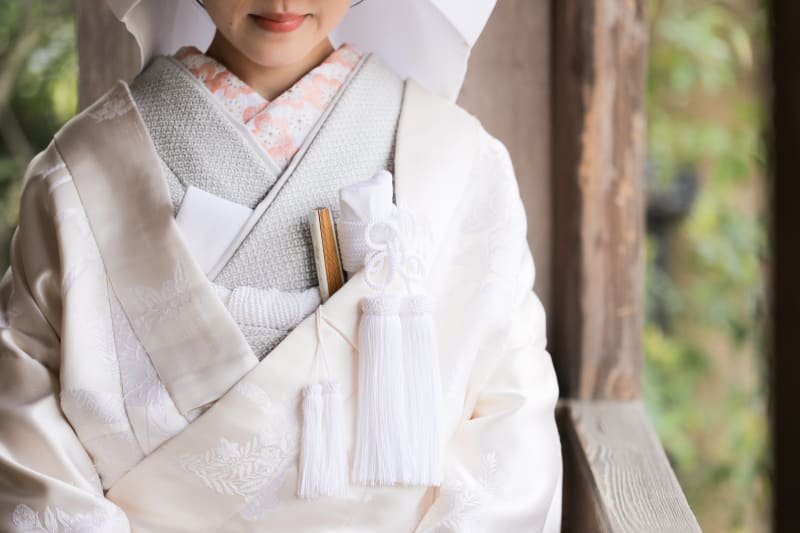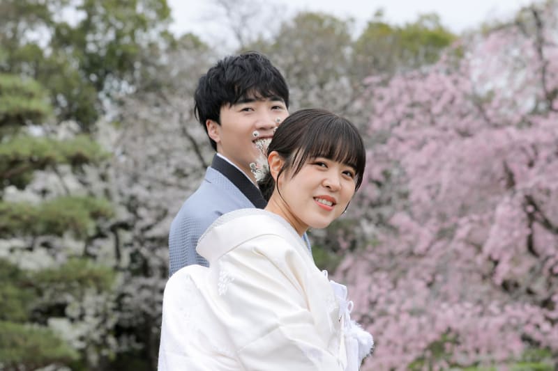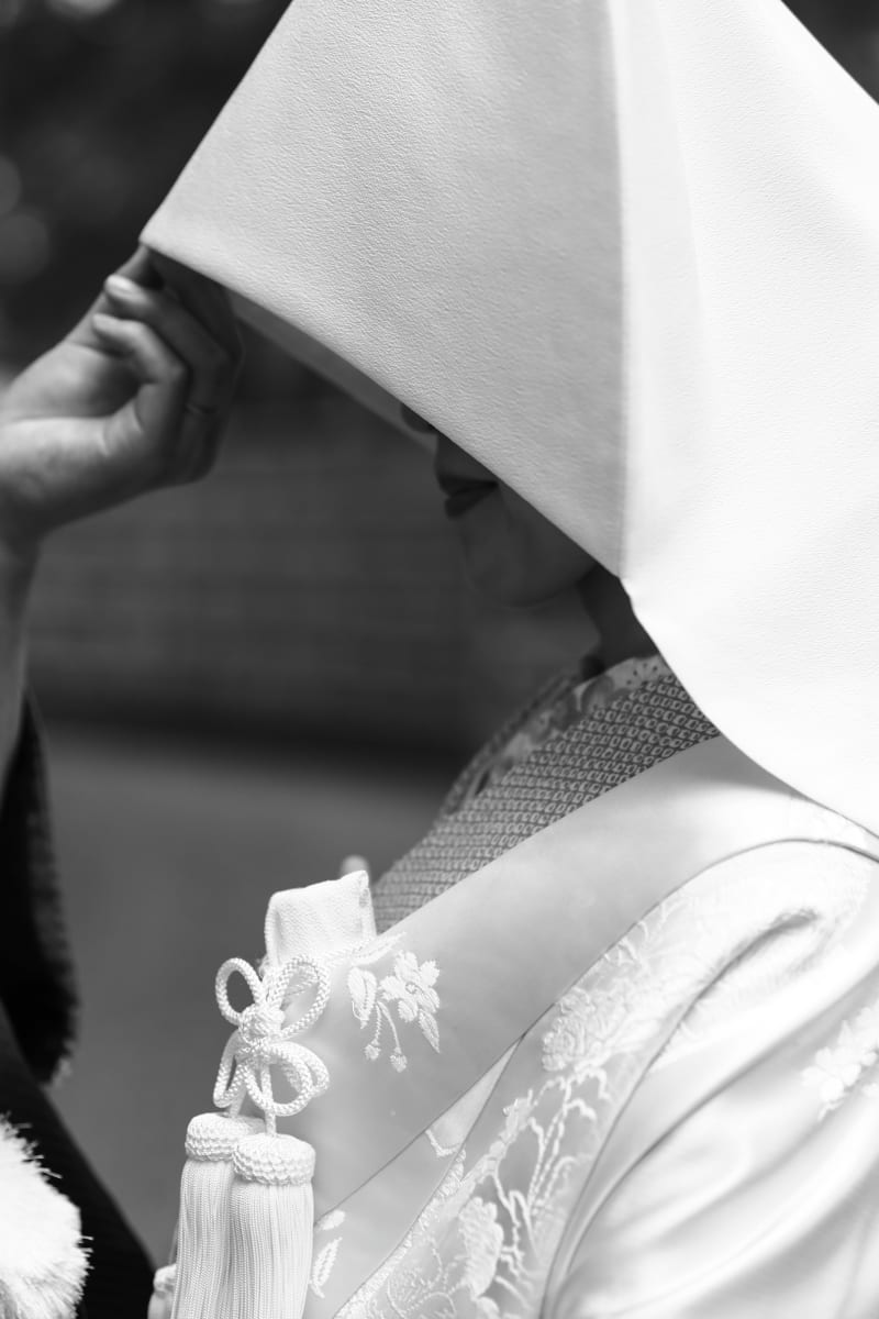 少し日陰に入ることができる場所で綿帽子をつけての撮影。
