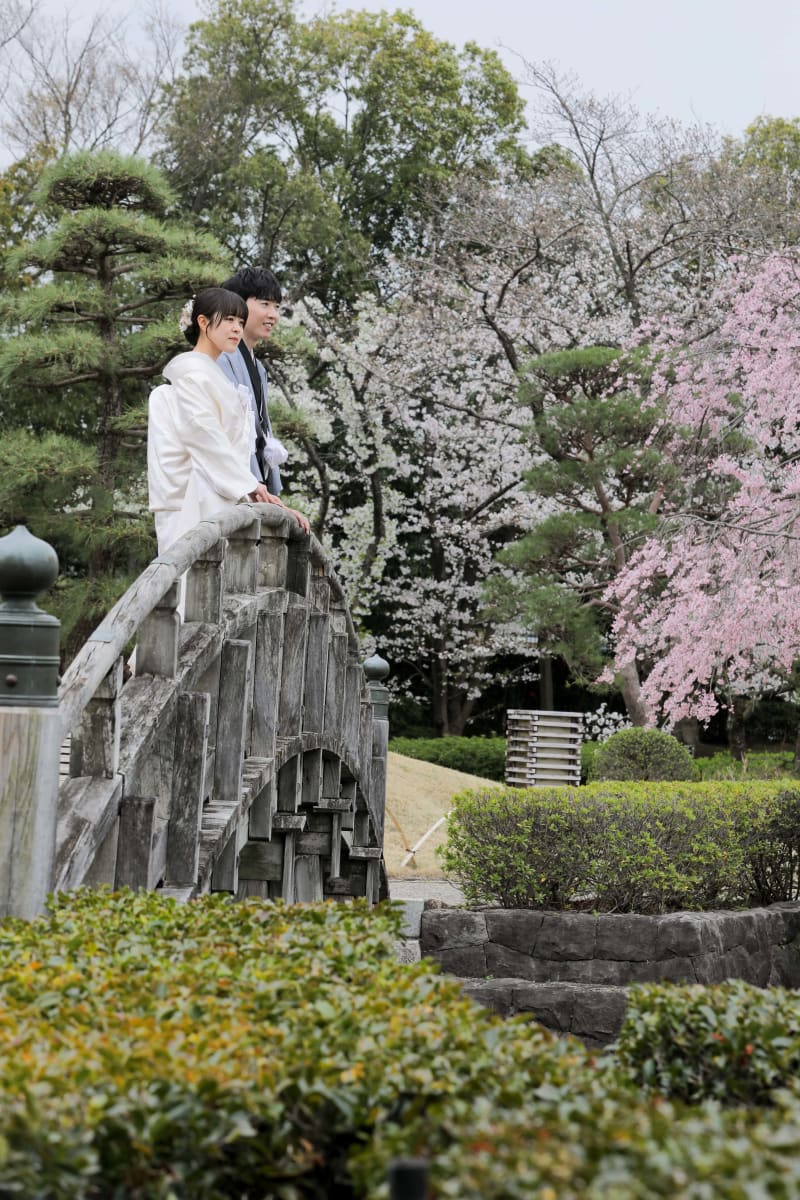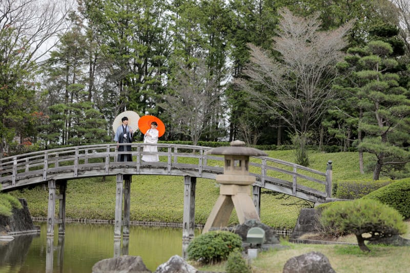 木橋や東屋、竹林。季節に合わせて桜や紅葉とお撮りすることができます!