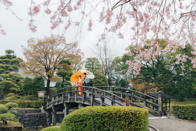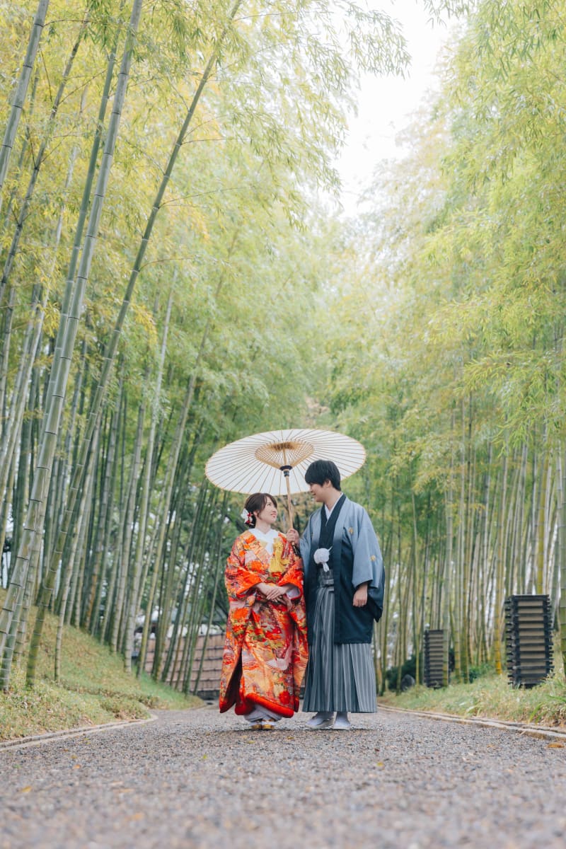 撮影の日は少し雨が降っていましたが、地面に綺麗に反射するお二人や、