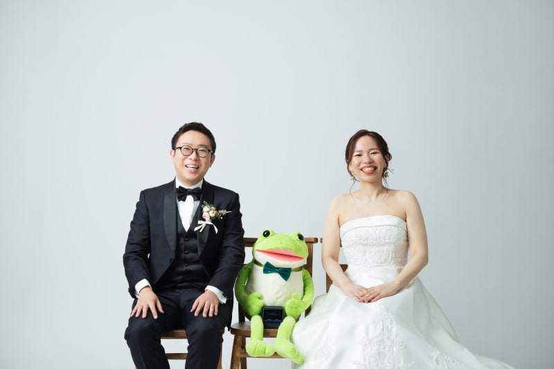ご新郎様がカエルが好きで、ご新婦様が蝶ネクタイをつけてくださいました!