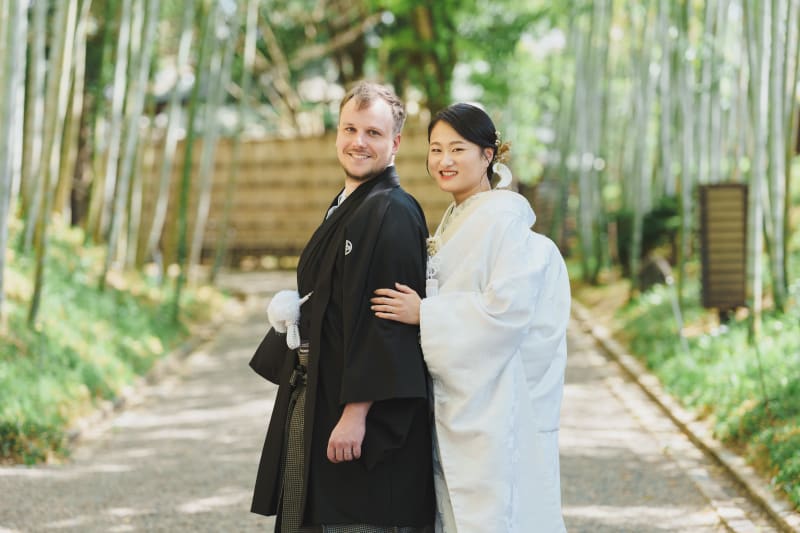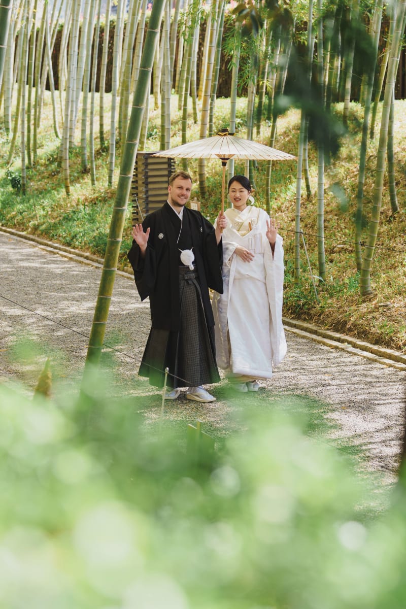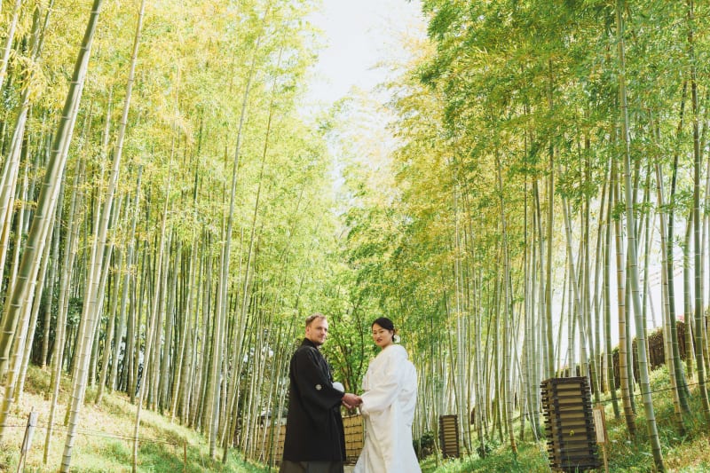 撮影スタートは、竹林エリアから。光も差し込んでより綺麗な印象に。木漏れ日なども活かして撮影しました!!!