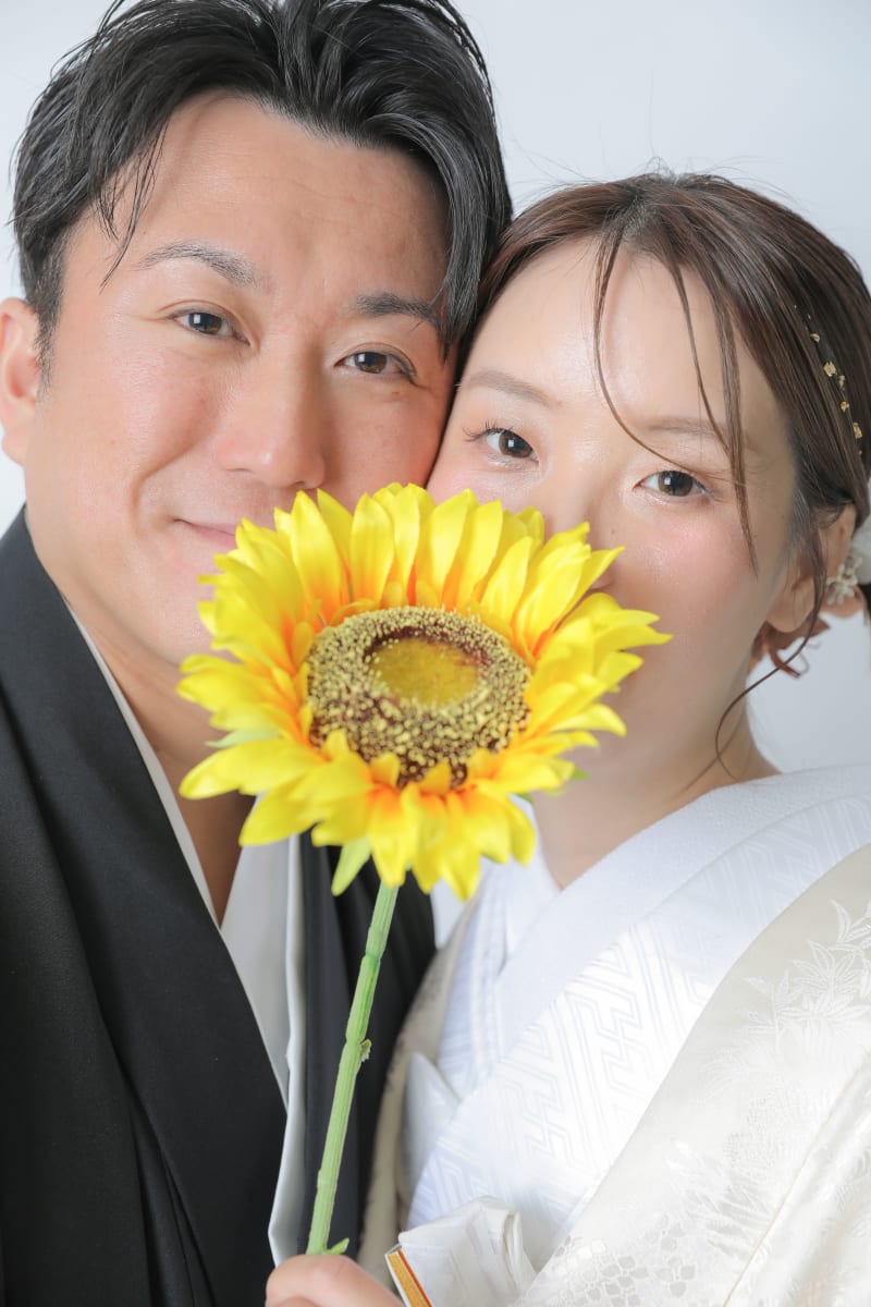無地の背景だからこそ、シンプルにも可愛らしくも、お二人らしい自由なお写真が残せます!
