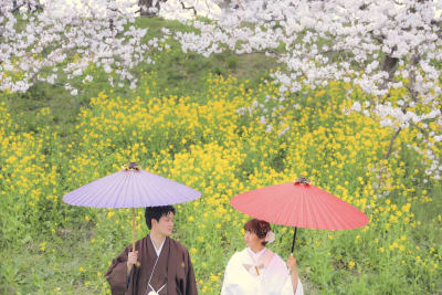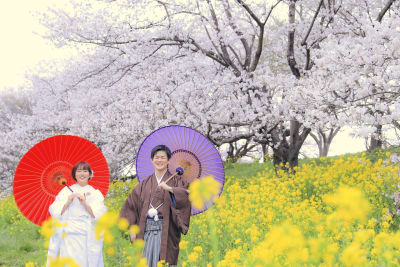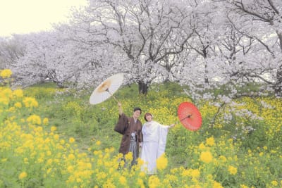 菜の花と一緒に撮影できたり、1KM続く桜並木で撮影できたり!!