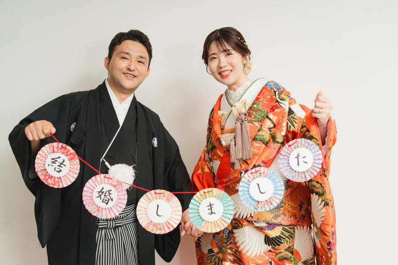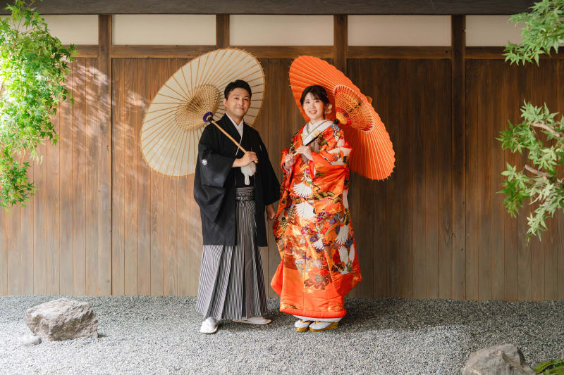 スタジオ内には、和傘のご用意もございます。お二人のお写真に是非取り入れましょう。