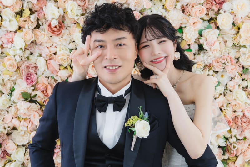 新郎様のほっぺをぷにっとつつくポーズが可愛らしいです♡