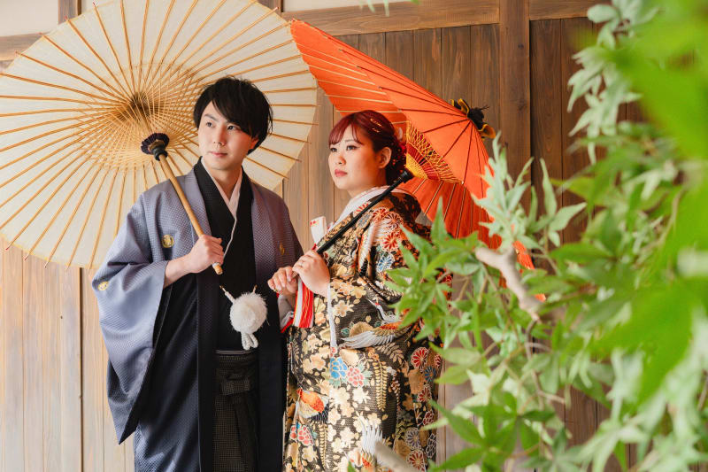 番傘を使っての撮影も、和の雰囲気満載で和装ならではのお写真になりますよ!