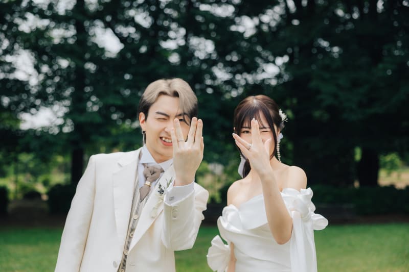 おふたりの大切な指輪も決めポーズで!ウィンクもバッチリです!!