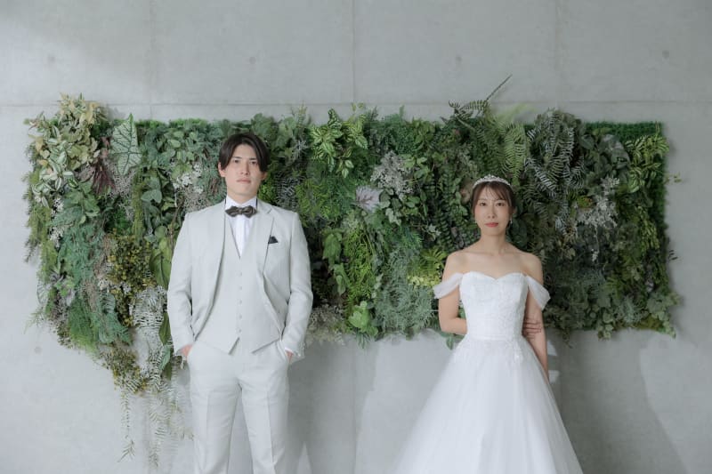 コンクリートのスタイリッシュな背景や、お花が敷き詰められたキュートな背景も、一度の撮影でお二人のご希望に合わせて撮影できちゃいます!