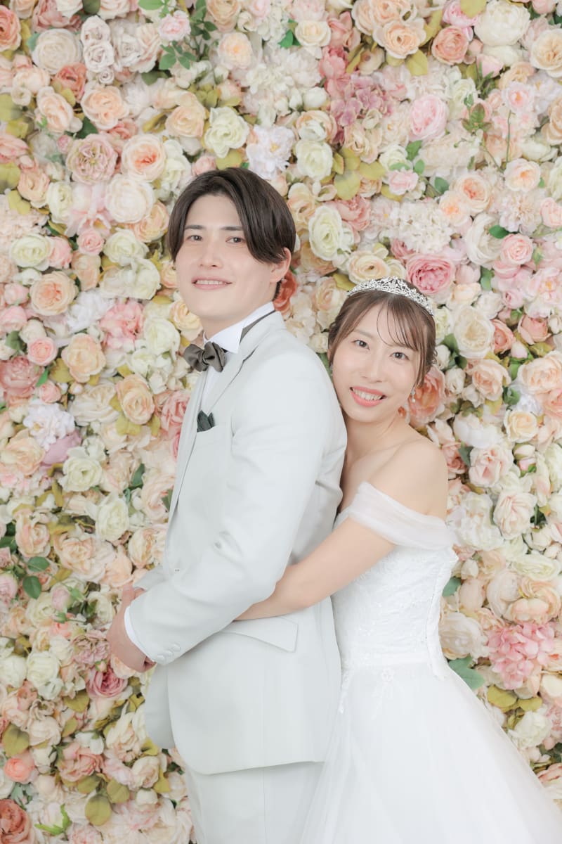 まずはシンプルな背景で、台紙にも入るフォーマルなお二人のお写真を。