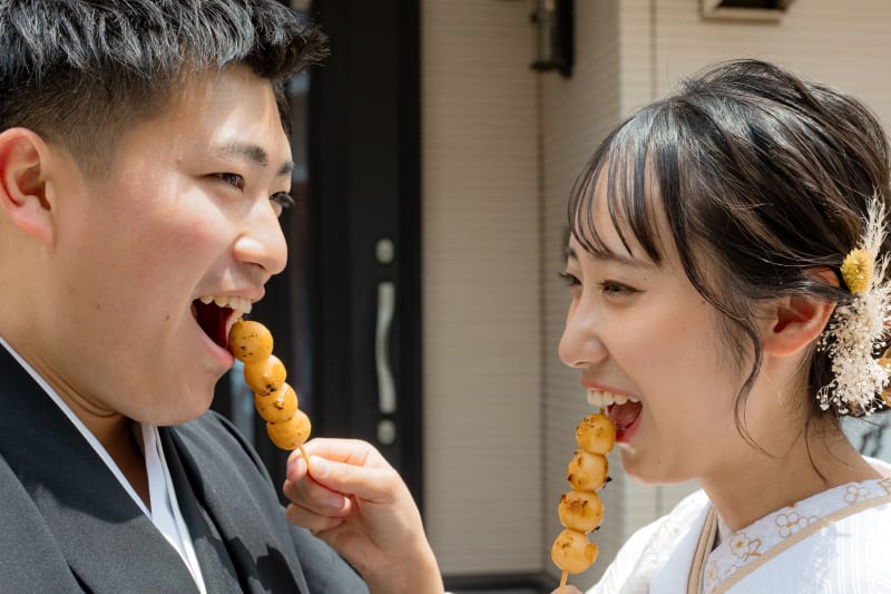 お団子を食べさせあっているお二人の表情がとっても可愛らしいです!