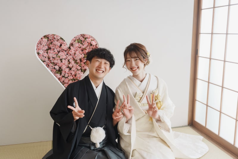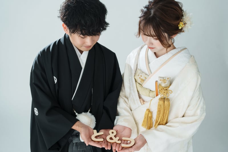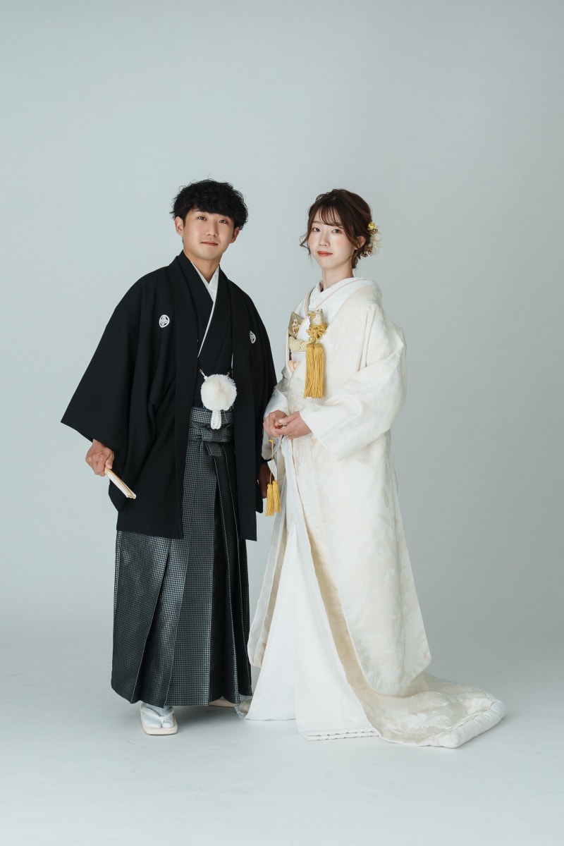 こちらのカットは、台紙にも入る和装の最もフォーマルな立ち姿になります。 お二人の記念に是非残しましょう。