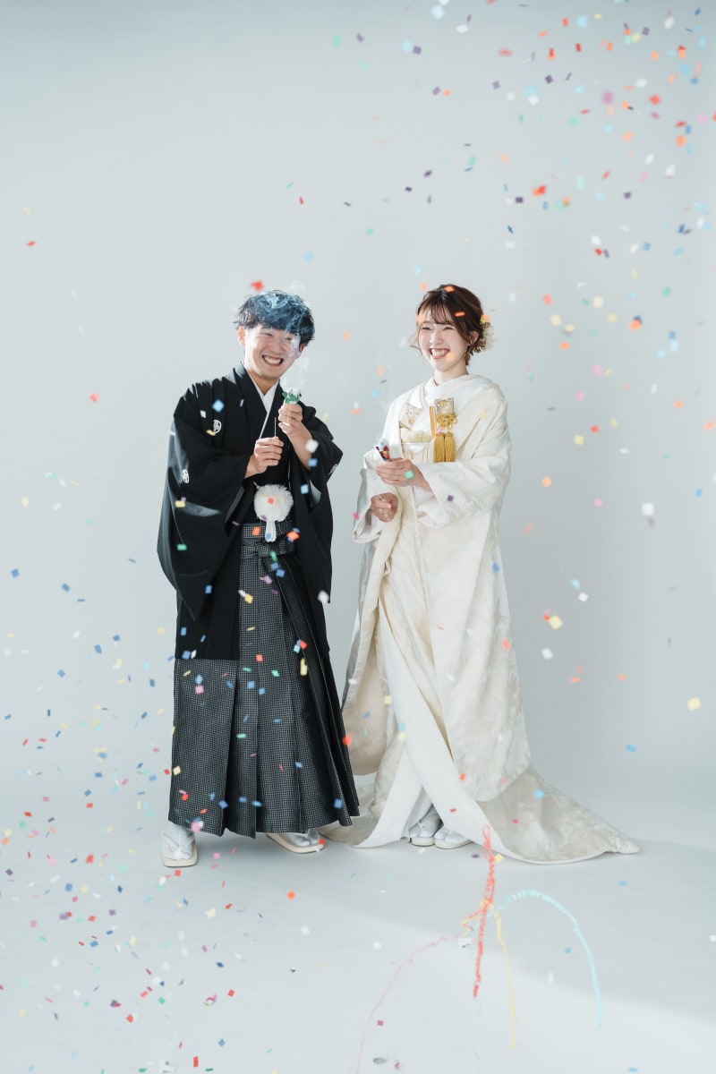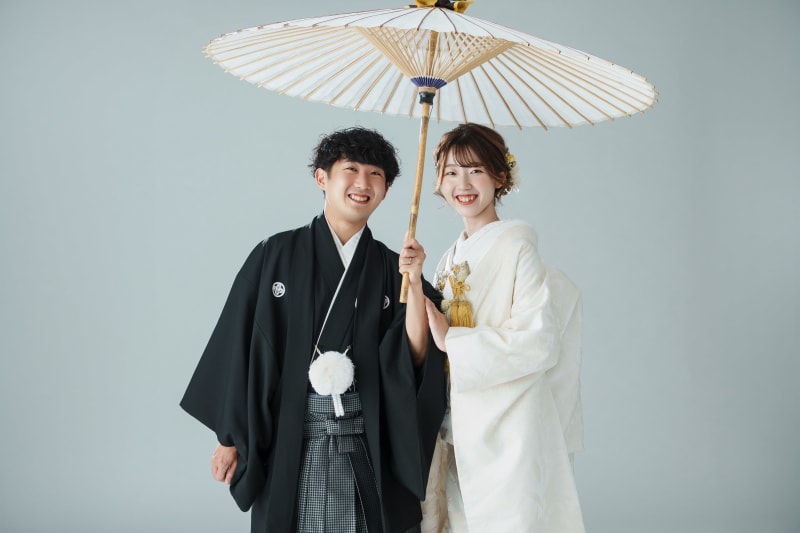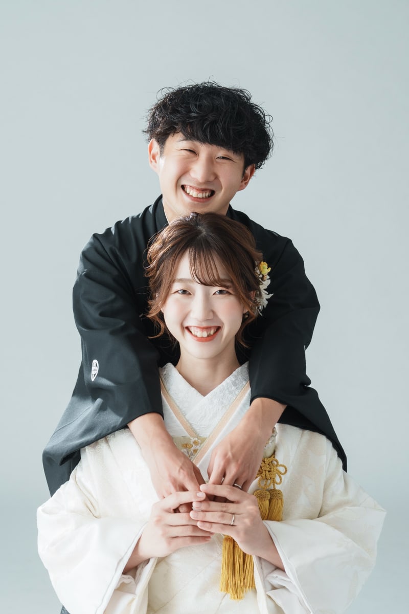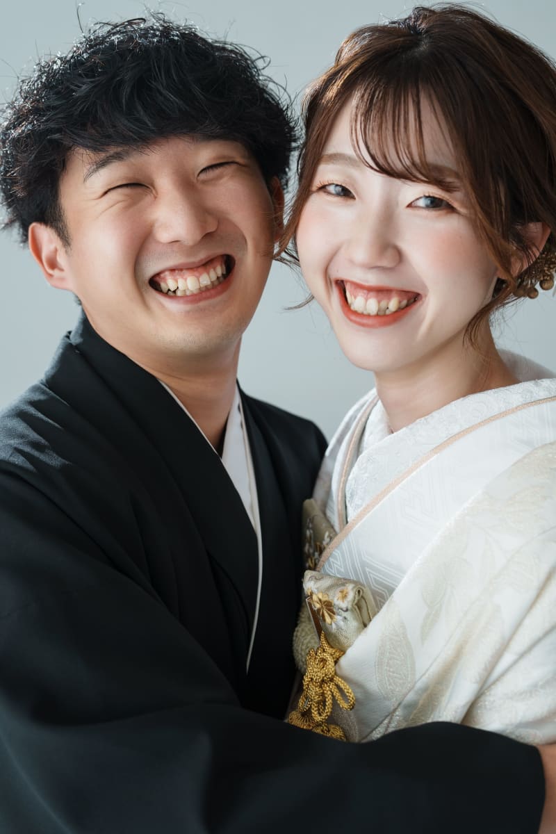 シンプルな背景だからこそお二人のお衣装が映えますね。素敵です!