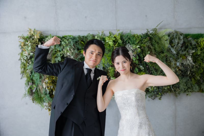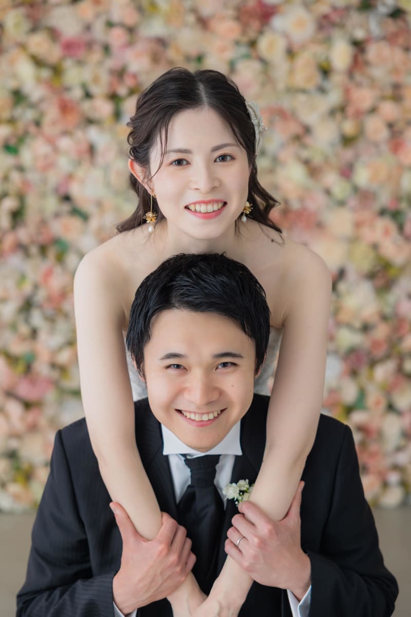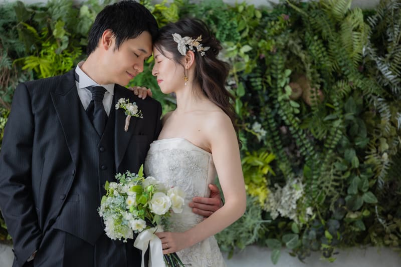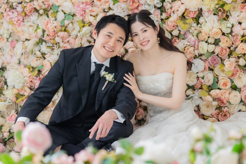 一面がお花で敷き詰められたフラワーウォールでの撮影も可能です! お二人の好きな背景を選んでお写真を残しましょう!