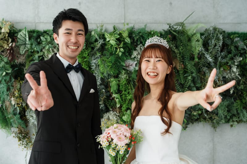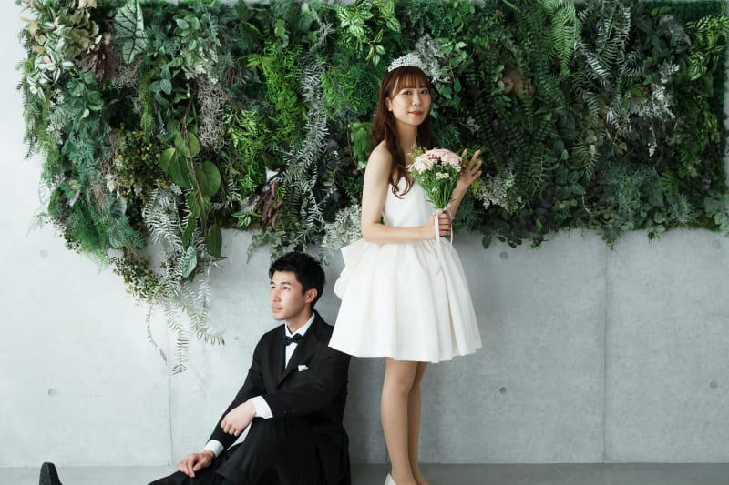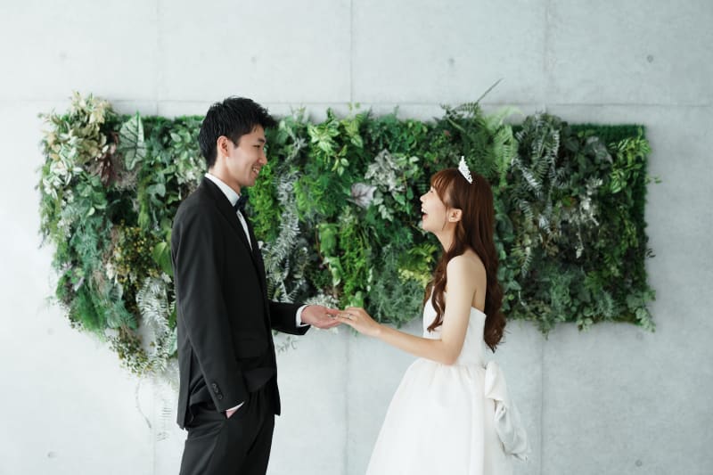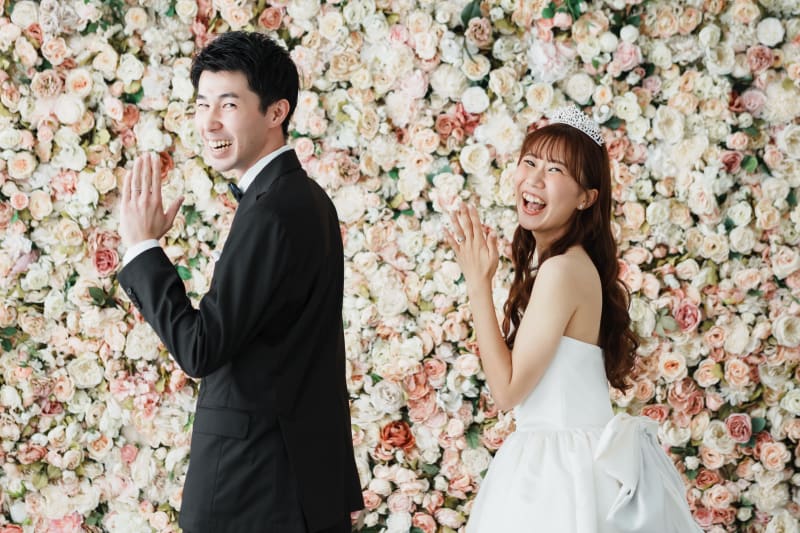 一面がお花で敷き詰められたフラワーウォールでの撮影も可能です! お二人の好きな背景を選んでお写真を残しましょう!