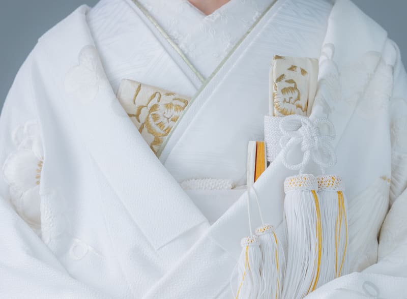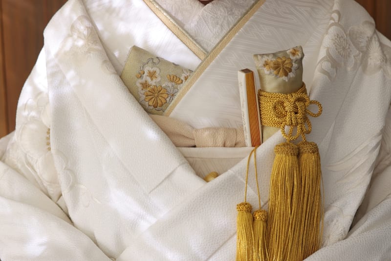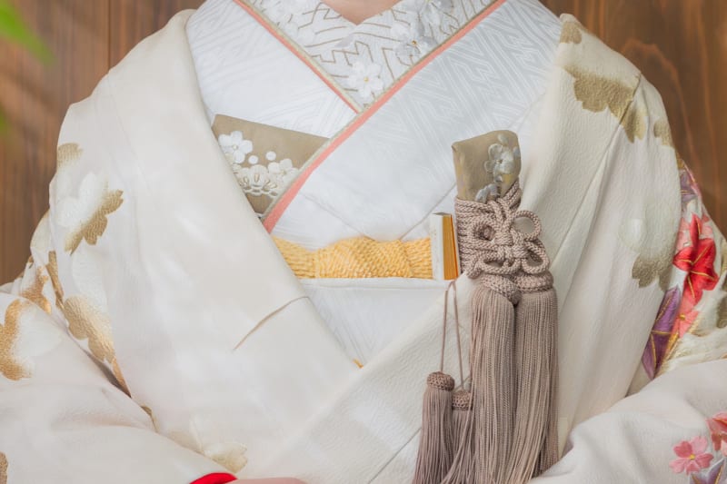 真っ白なお着物に差し色でイエロー系の色味を入れることで柔らかいイメージに!