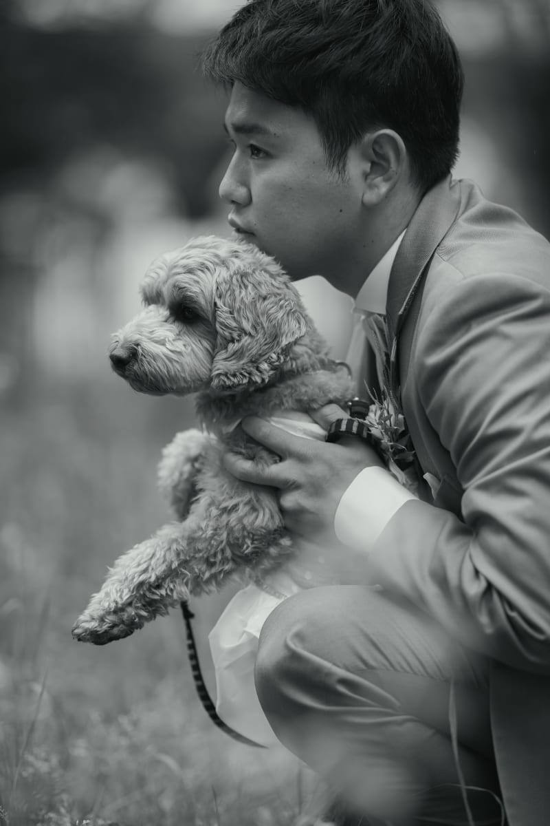 お二人の表情や、ふとした瞬間のご新郎様と愛犬ちゃんの2ショット(モノクロの写真の1枚)も最高すぎませんか?