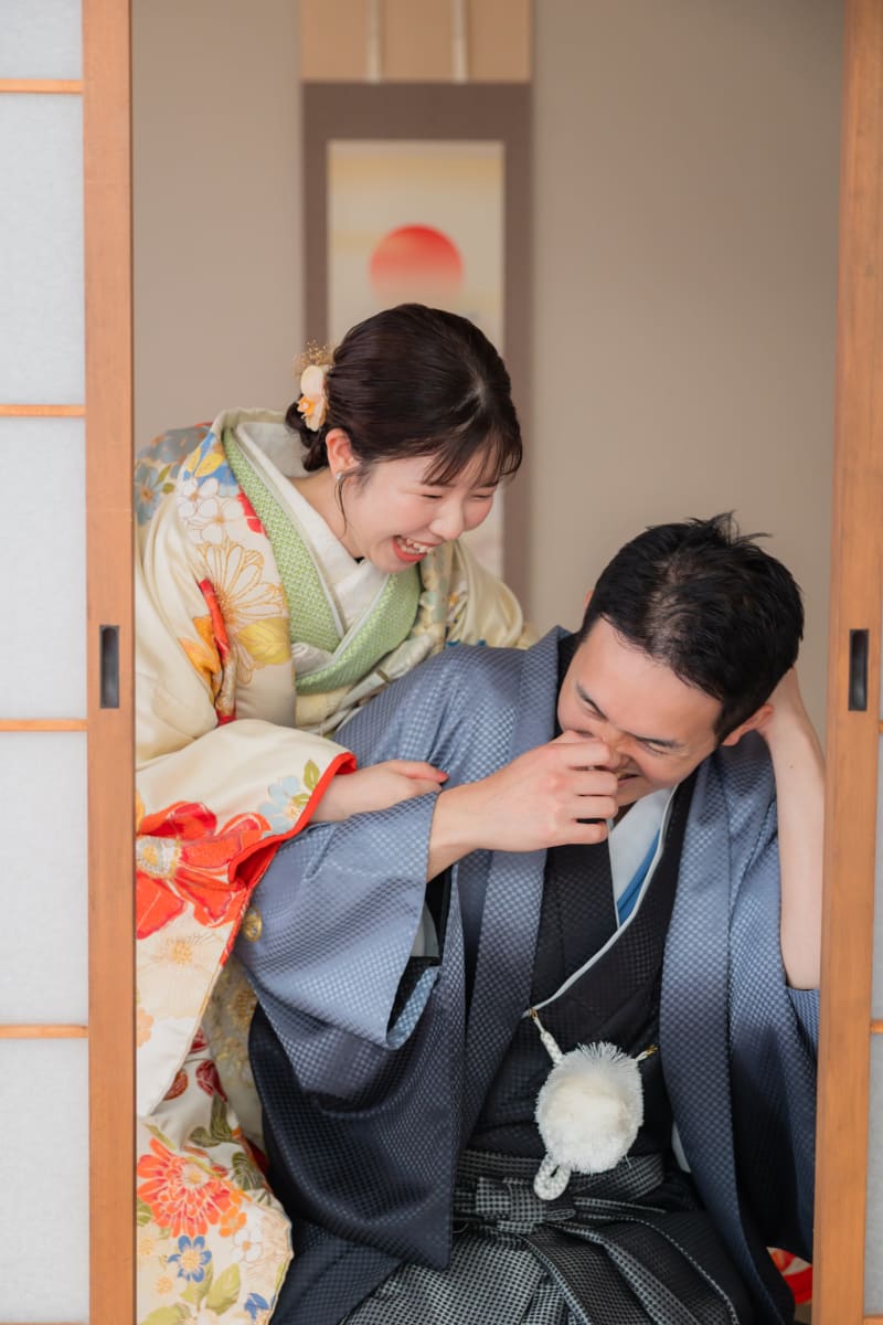 かっちりめなお写真もいいですが、ラフに普段通りのお二人もお写真に残しましょう!