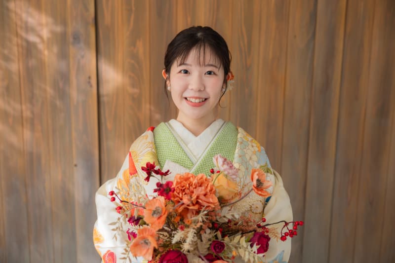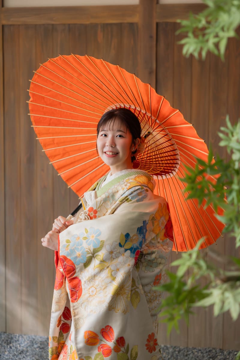 こちらは、ご新婦様のソロカットです。 当日お選びいただいたお着物柄やコーディネートがしっかり映えるよう色々な角度からお撮りいたします。