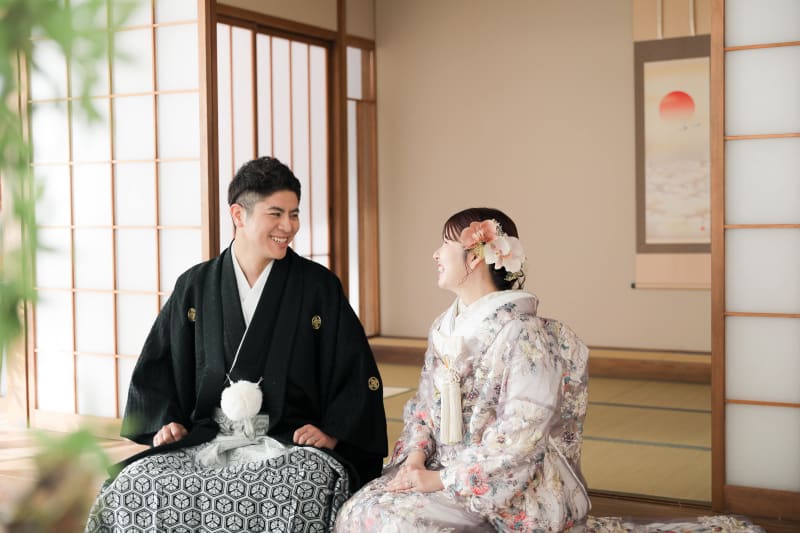 〈 和装 〉ご来店回数 2 回(オンライン相談会の場合は1回) 撮影相談会 → 撮影当日 (衣装選びは撮影当日に行います) → 商品の発送 *衣装合わせ日と撮影日は、撮影相談会がお済みのお客様より順次ご案内となります。