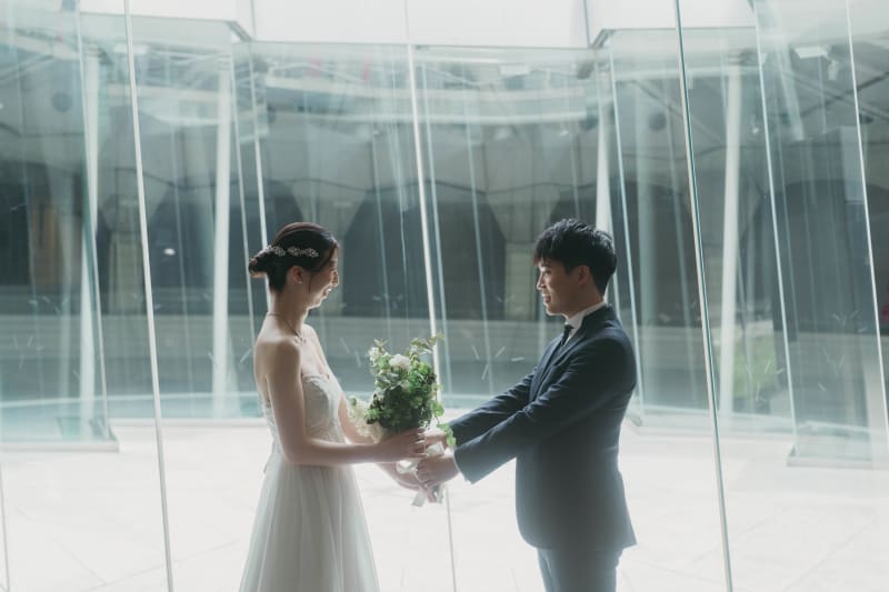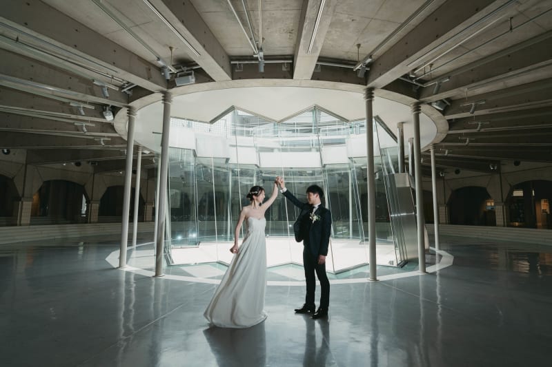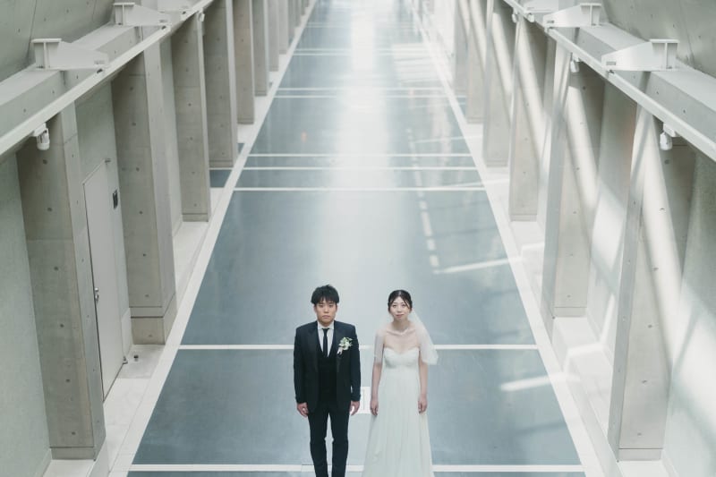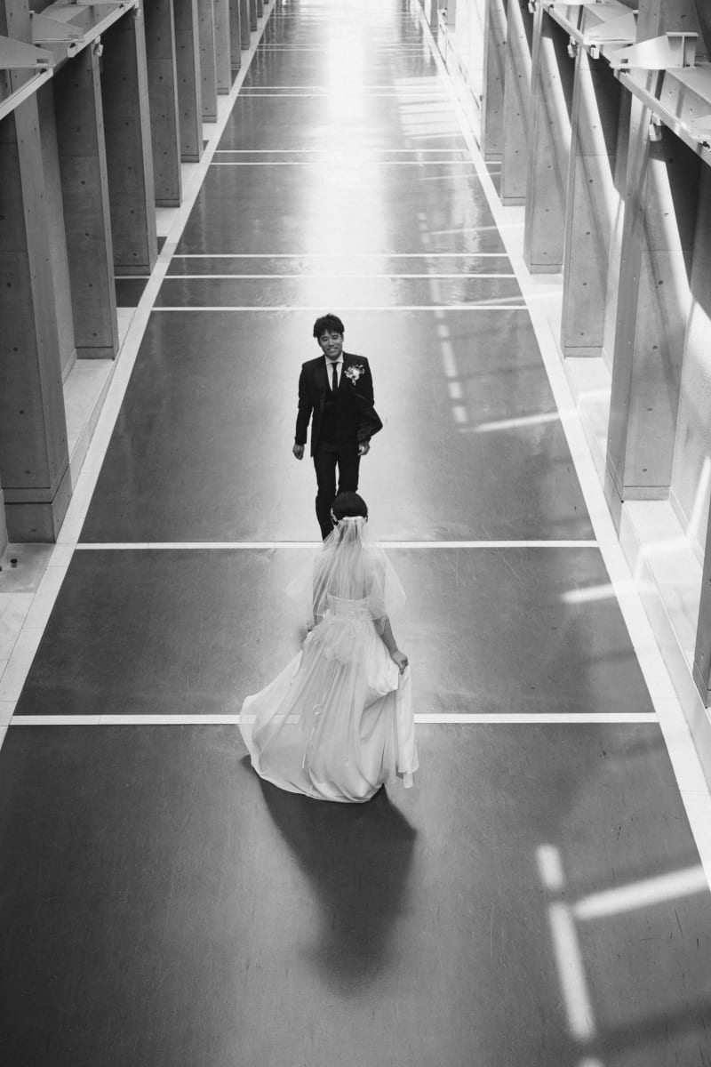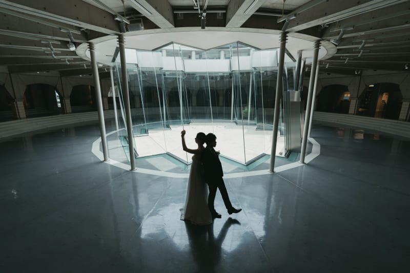 特徴的な形の「光の庭」では中央から差し込む光によってコントラストが印象的な写真をお撮りしております。