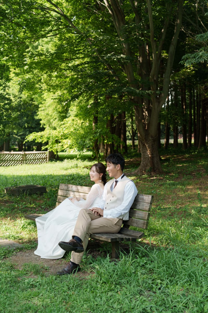 ベンチに座りながら、自然体で楽しんでいるお二人が素敵でした。