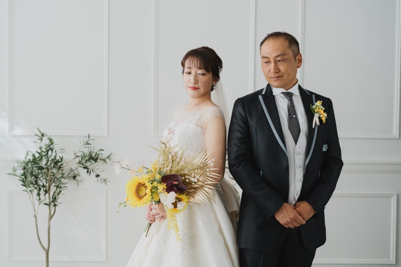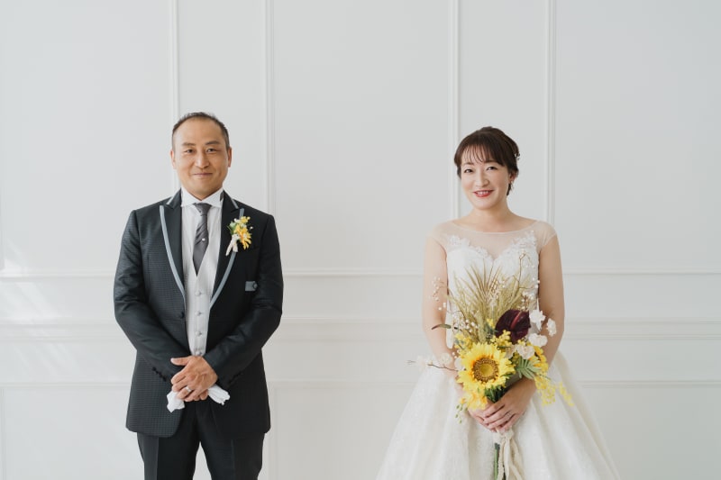 お選びいただいたひまわりのブーケも夏らしいアクセントになっています!