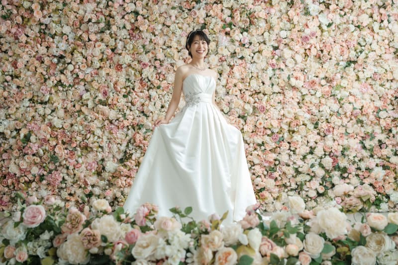 一面がお花で敷き詰められたフラワーウォールでの撮影も可能です! お二人の好きな背景を選んでお写真を残しましょう!