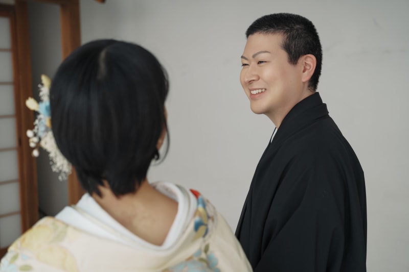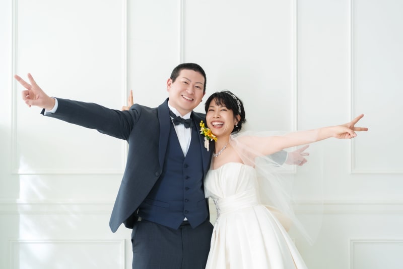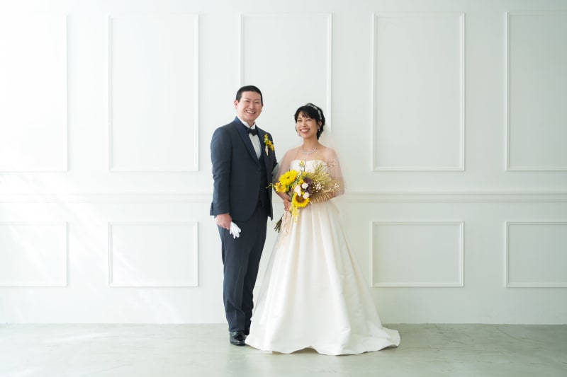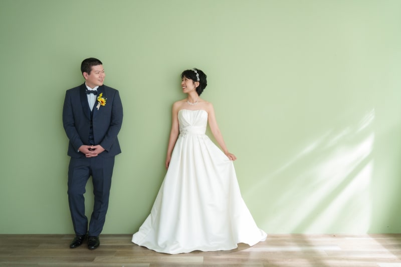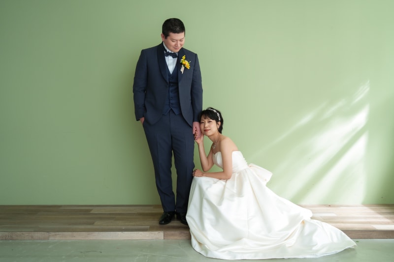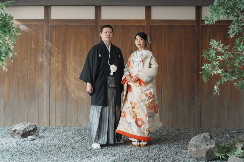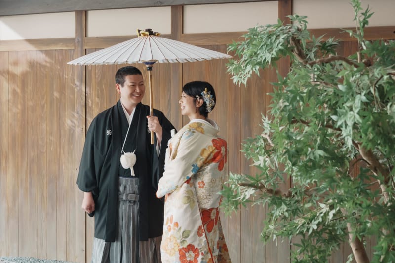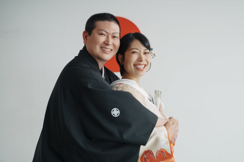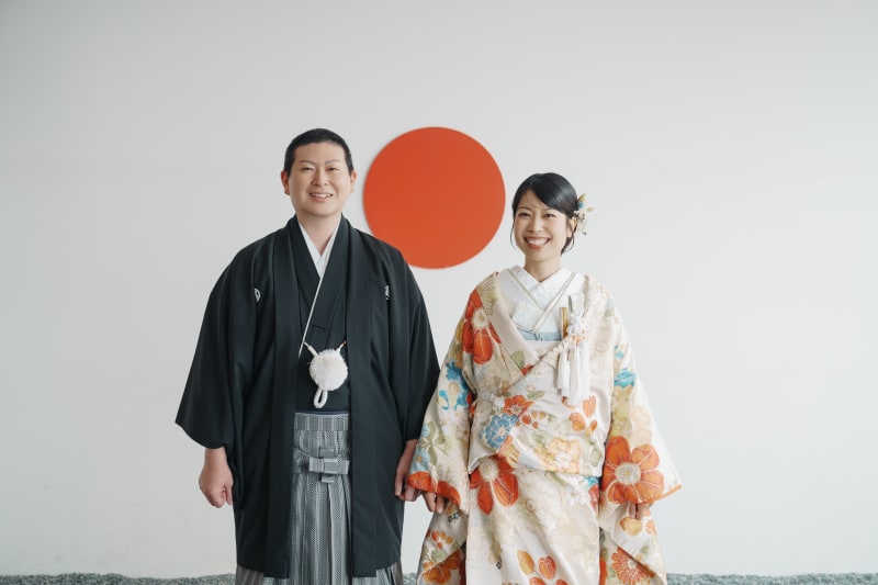 シンプルながらも和風な雰囲気を醸し出してくれる日の丸背景は、お二人の衣装やヘアメイク、表情が主役のお写真を撮るのにもぴったりですね。