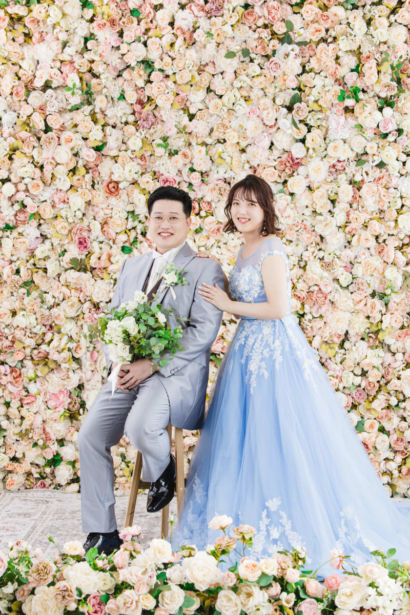 洋装ハウススタジオではシンプルな背景から華やかなお花の背景まで幅広くございます。
