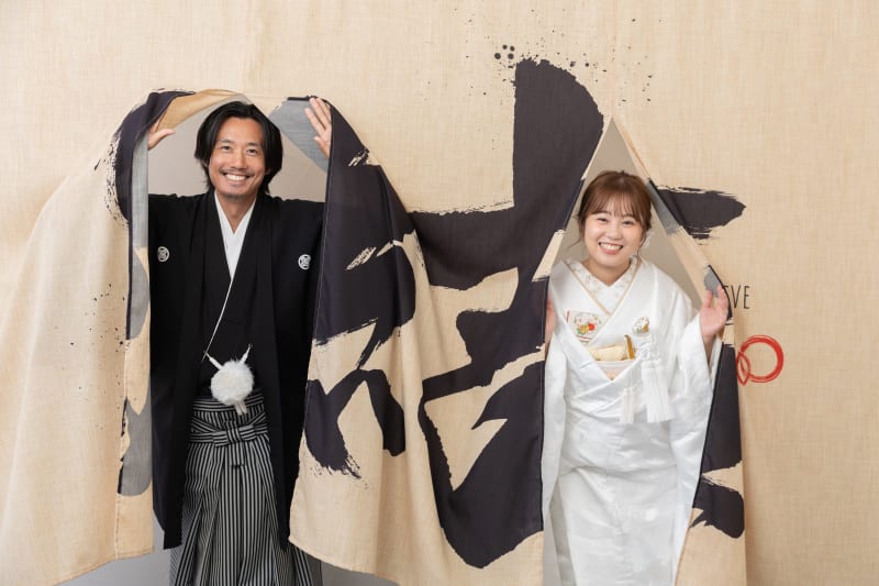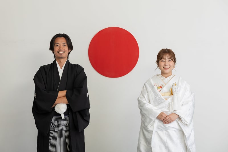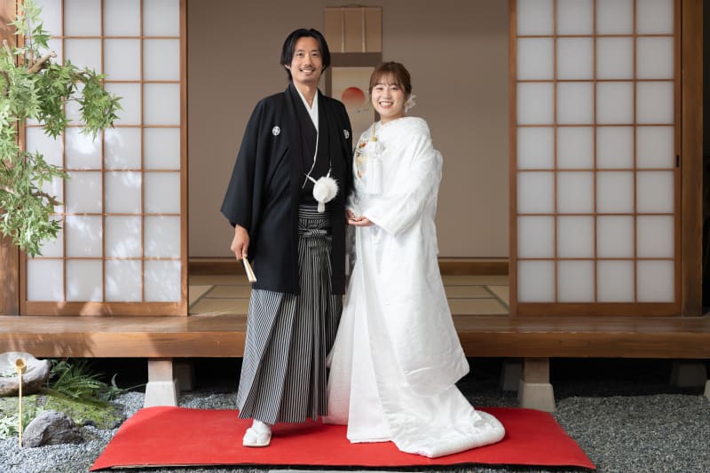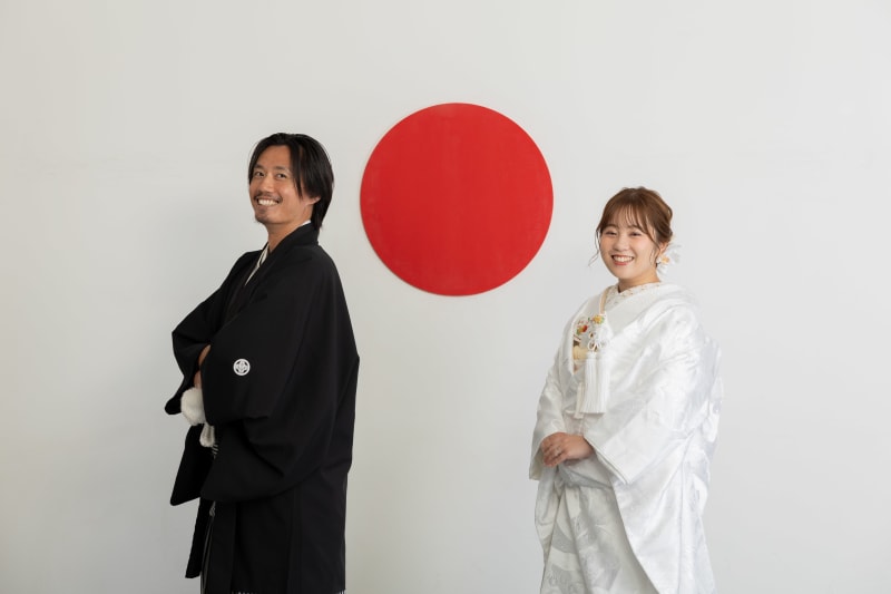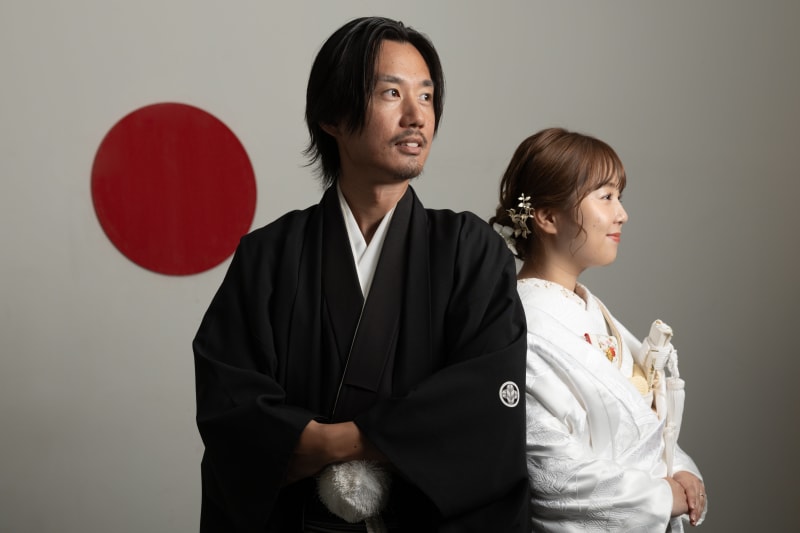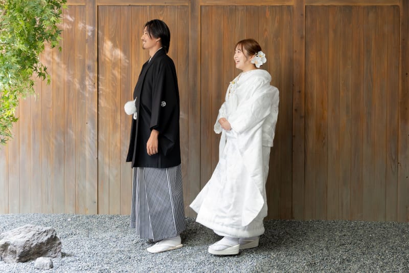 和装の伝統的な立ち姿では新婦様の着物を綺麗に整えてからお撮りしていきます。