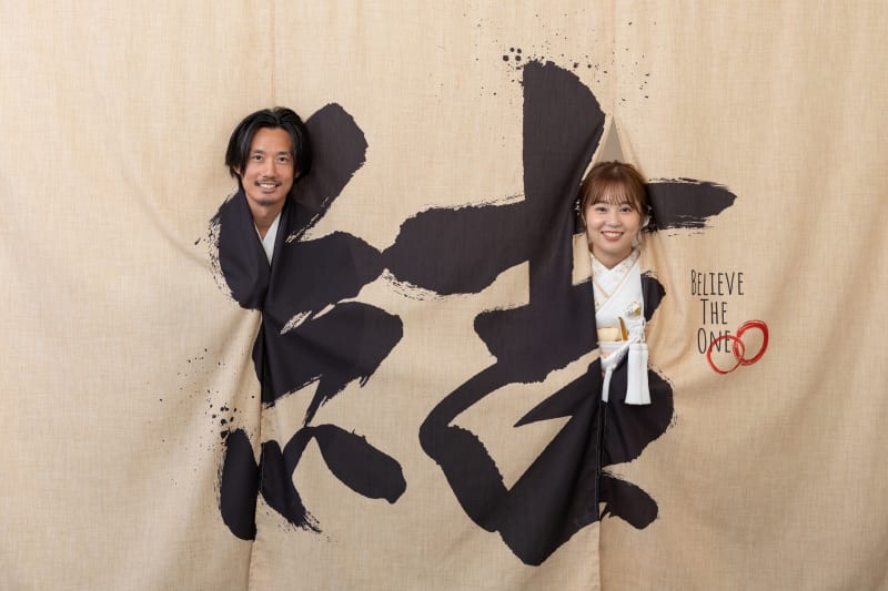 暖簾の背景ではちょっぴりお茶目なお写真も。