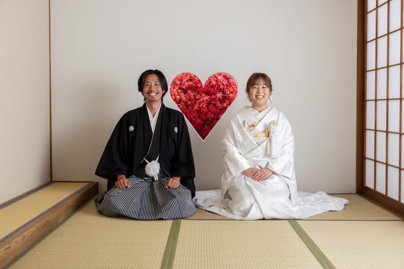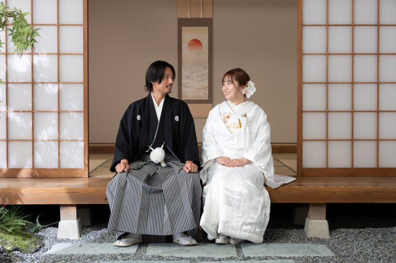お茶室を背景に、ゆったりしたお写真はもちろんかっちりしたお写真も。