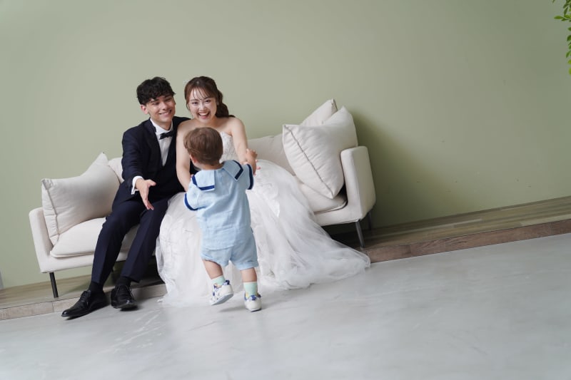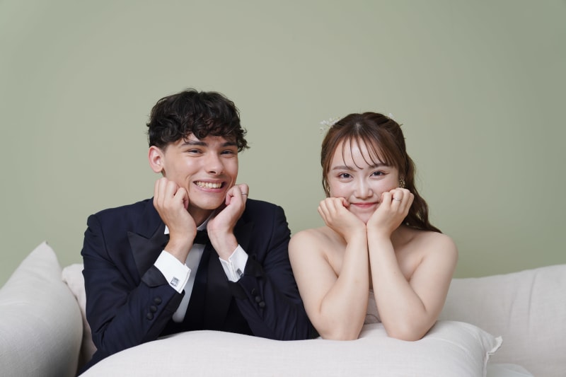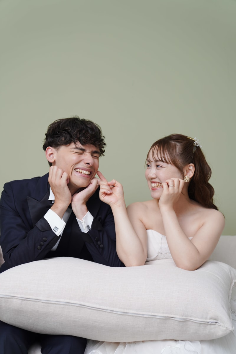 明るい光が差し込むようなライティングがお二人の笑顔にぴったりです。