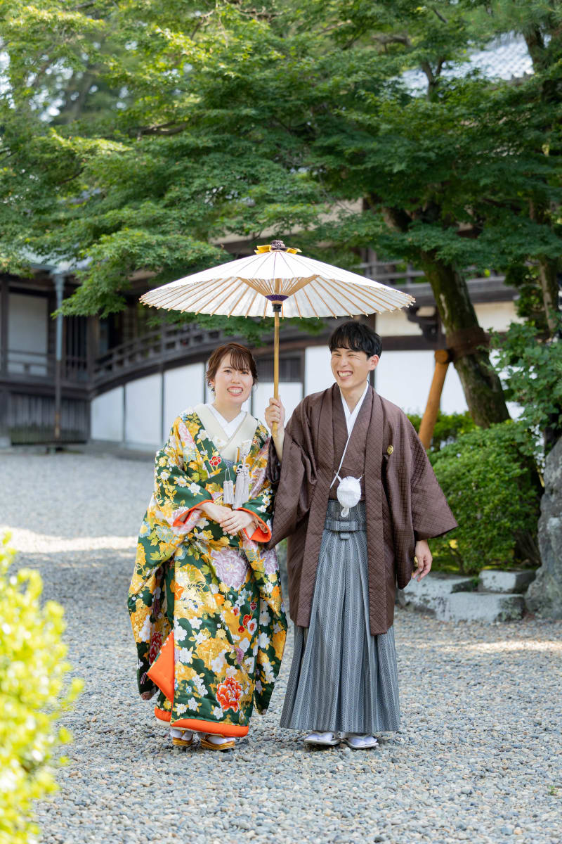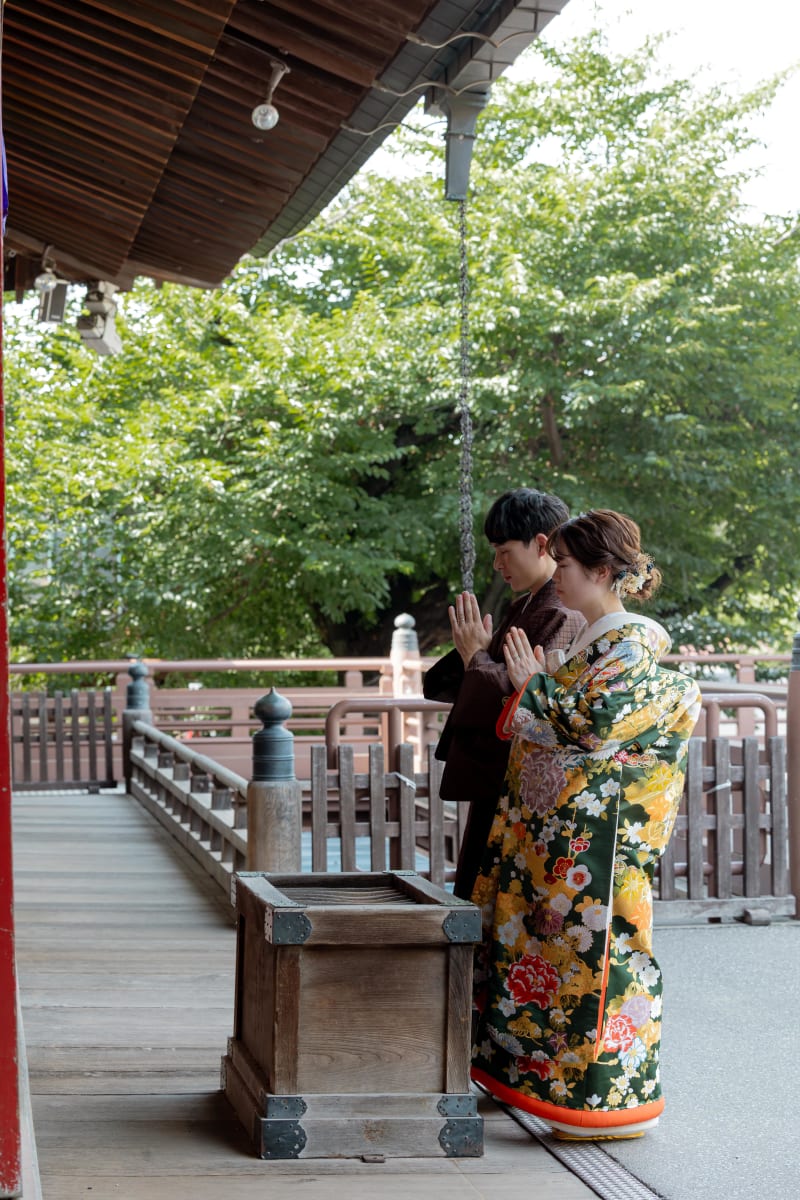 〈 和装 〉ご来店回数 2 回(オンライン相談会の場合は1回) 撮影相談会 → 撮影当日 (衣装選びは撮影当日に行います) → 商品の発送 *衣装合わせ日と撮影日は、撮影相談会がお済みのお客様より順次ご案内となります。