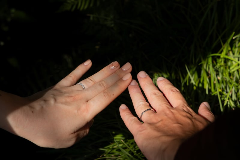 お二人が、指輪が綺麗に見える光を探してくださいました。