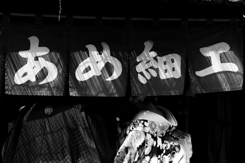光が綺麗だったあめ細工屋さんの暖簾です。