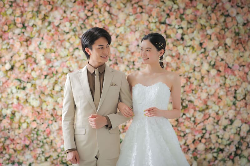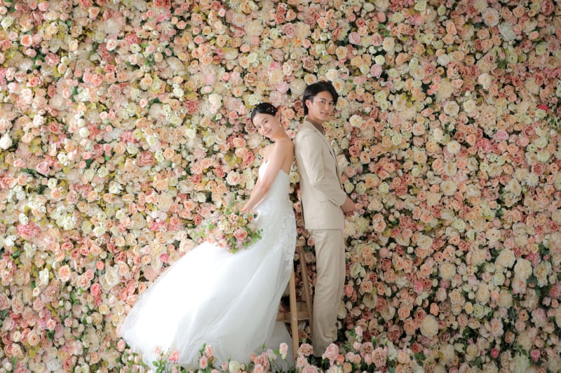 今回は洋装ハウススタジオの中でも特にご希望をいただくお花背景でのお写真の紹介を!